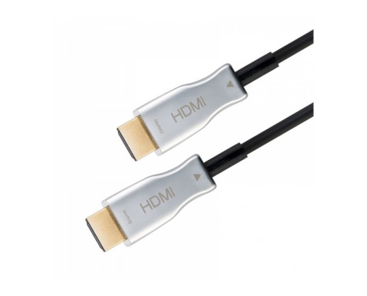 HDMI kabli so sodobna oblika povezave za avdio video produkte. HDMI kabel z nazivom GOOBAY Optical Hybrid High Speed HDMI (M/M) 2.0 4K 60Hz 20m z Ethernet AOC pozlačen črn Optični Hibridni kabel je namenjen za digitalno multimedijsko povezavo med vašimi napravami (npr. računalnik) na HDMI vhodne naprave (npr. projektor ali zaslon).