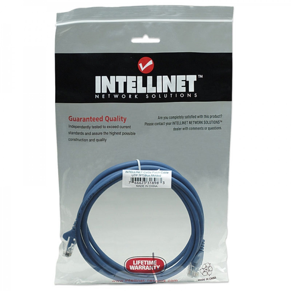 UTP kabel z nazivom INTELLINET CAT5e UTP 2m moder mrežni priključni patch kabel služi prenosu podatkov saj je Ethernet kabel - RJ45 kabel - UTP kabel je najpopularnejši kabel za protokol (prenos paketnih podatkov) v lokalnih omrežjih.