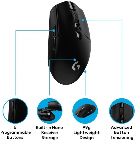 LOGITECH G305 Lightspeed gaming brezžična optična črna miška