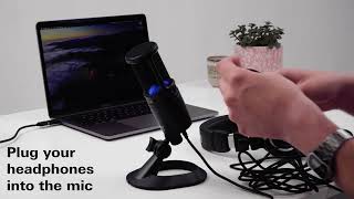 Preprost dotik kapacitivnega gumba za izklop zvoka takoj utiša mikrofon. LED obroč mikrofona se spremeni iz modre v rdečo, kar pomeni, da je zvok izklopljen.