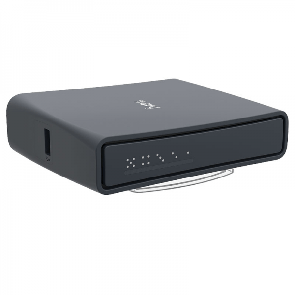 Novi dizajnerski univerzalni ovitek omogoča namestitev enote vodoravno (namizje) ali navpično (ohišje stolpa). Priložen je komplet za pritrditev na steno.