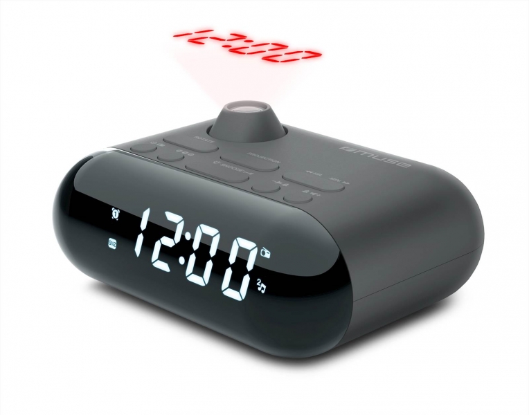 Muse radioura M-179 P s projekcijo časa in 0,9 palični zaslon, dvojni alarm, FM PLL Radio z 20 prednastavljenimi postajami, dremež, budilka z radiem ali brenčalom..