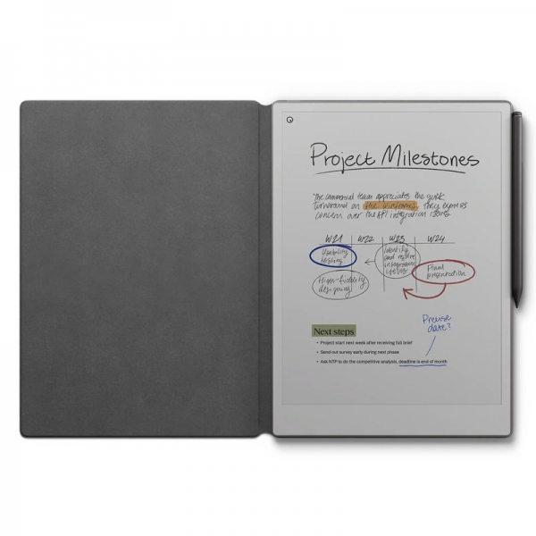 Tablica proizvajalca REMARKABLE, je kompaktna, čvrsta iz kvalitetnih materjalov, poleg tega pa ima osupljiv zaslon na dotik mer in skupaj z resolucijo skrbi za bogato reprodukcijo barv in čudovite slike na zaslonu tablice ob gledanju filmov ali brskanju po spletu. Tablični računalnik reMarkable Paper Pro 11,8" 64GB + Marker Plus pisalo + Book Folio Mosaic Weave Basalt ima vgrajen zmogljiv procesor v povezavi s hitrim delovnim pomnilnikom kapacitete je zato več kot primeren izbira za uživanje, kjerkoli že boste. Izbrani tablični računalnik se lahko pohvali z vgrajenim bliskovnim pomnilnikom velikosti kar .