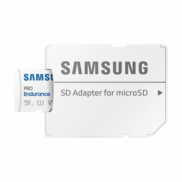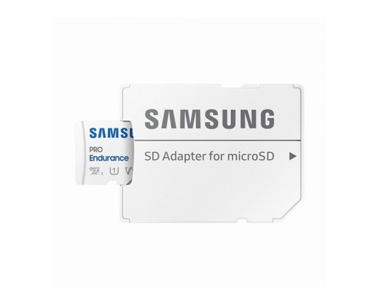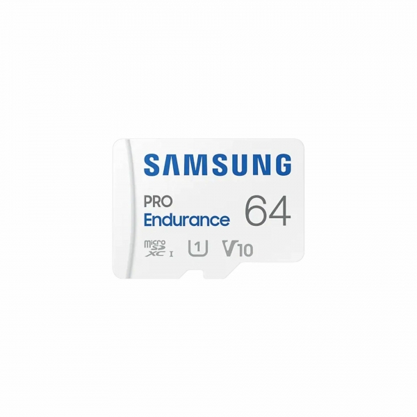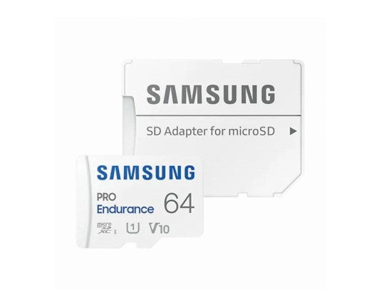 Samsung PRO Endurance Micro SDXC kartica s kapaciteto 64 GB. Kartica ima hitrost branja do 100 MB/s, ter hitrost pisanja do 30 MB/s (U1/V10). Omogoča do 35 tisoč ur presnemavanja in je namenjena uporabi v nadzornih, telesnih in avto kamerah. S priloženim adapterjem iz Micro SD v SD.