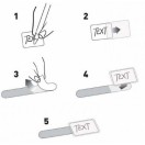 Dodajte priloženo etiketo z zaščito na samolepilni del vezice