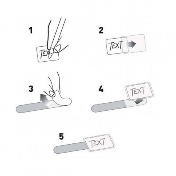 Priloženi kartončki za pisanje in prozorne plastične zaščite napisa