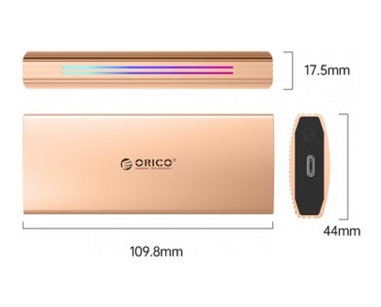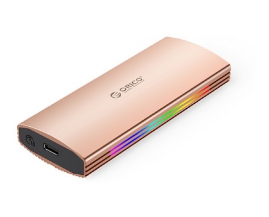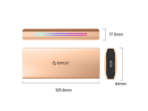 Zunanje ohišje za M.2 NVMe 2230-2280 v USB3.2 Gen2 Type-C, 10Gbps, RGB, aluminij, zlato-roza, ORICO M2R2-G2